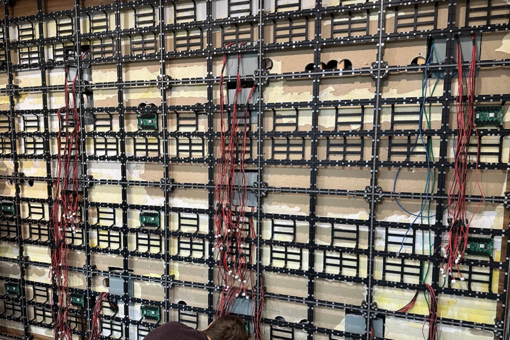 When I arrived, we found that one power supply had failed, causing three modules to go dark. Fortunately, the replacement was quick — we swapped the faulty PSU, checked voltage alignment, and recalibrated brightness across all sections.