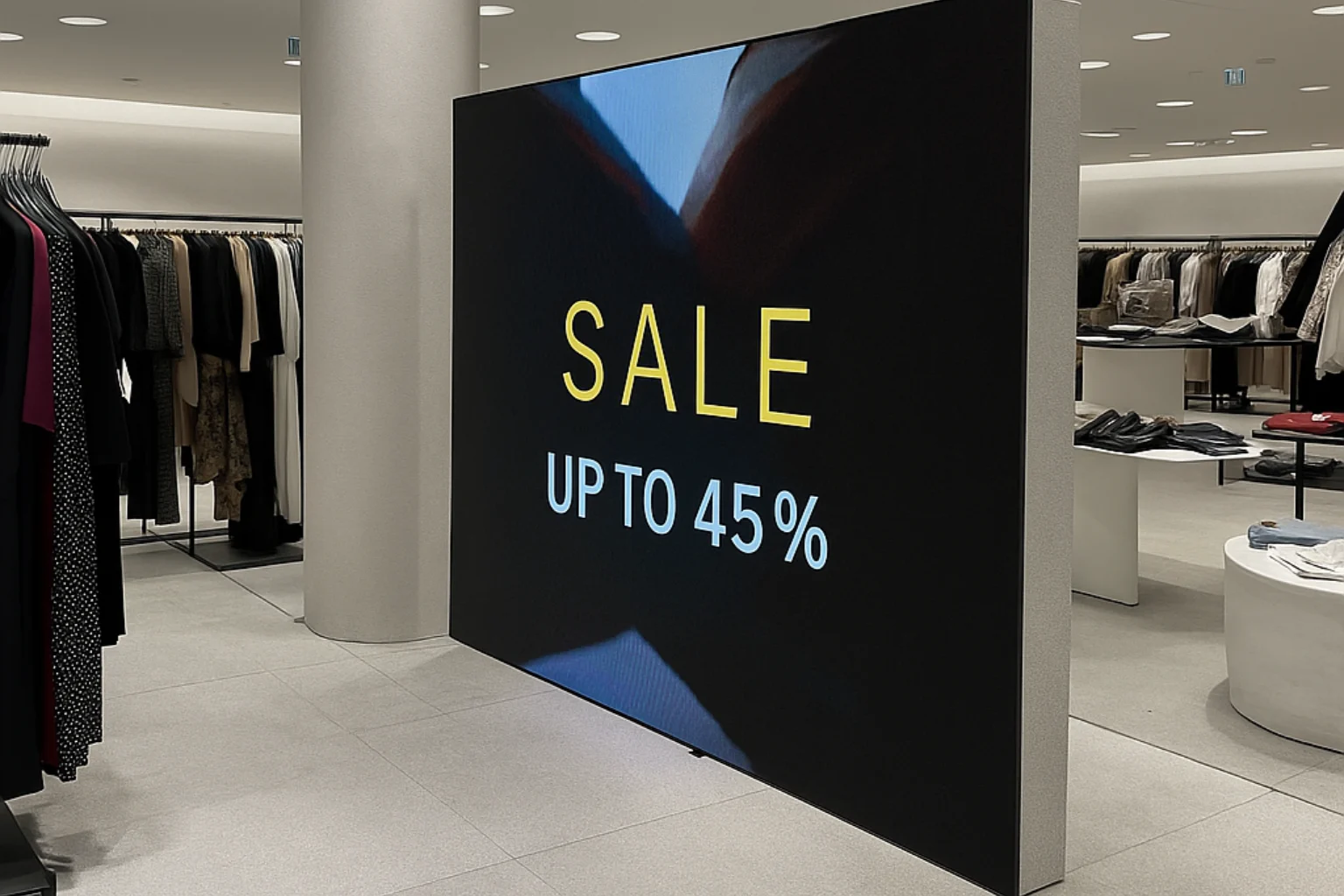 Highlight offers, guide customers, or promote new arrivals with easy-to-update digital signage.